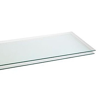 Available in two sizes: 12" x 24", and 12" x 48". 3/16" thick, with smooth edges, multi-purpose clear glass shelves are tempered for safety. Can be used with 12" length clear plastic shelf brackets. ... View Video